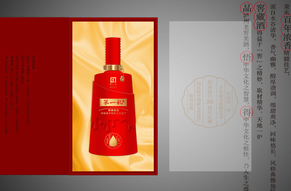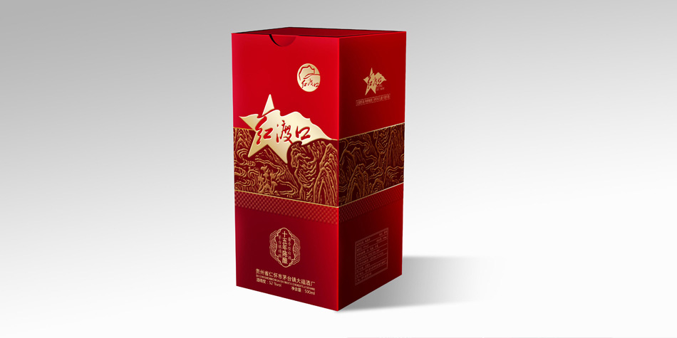 白酒中高檔包裝設計|包裝全案客戶背景:貴州紅渡口酒業有限公司座落于森林環繞,四季如春的“林城”貴陽。公司致力于弘揚國酒文化,倡導綠色健康生活方式,是一家誠信經營、規范運作的新星企業。 紅渡口系列酒生產基地位于“酒都”——茅臺鎮,占地面積一萬多平方米,與國酒“茅臺酒”酒廠僅一墻之隔,共享茅臺鎮各天然的釀酒資源。紅渡口系列酒均選用當地優質糯高梁、小麥為原料,按照與“國酒茅臺”一脈相承的釀造工藝,其酒香、酒色均為固態發酵中自然形成,并在茅臺鎮大環境中長期貯存。具有“醬香突出、細膩綿柔、醇厚凈爽、空杯留香”等特點。經相關單位組織專家鑒評“醬香白酒富含蛋白質、氨基酸、多種維生素及人體必需的微量元素,飲后不傷肝、不上頭,長期適量飲用有益健