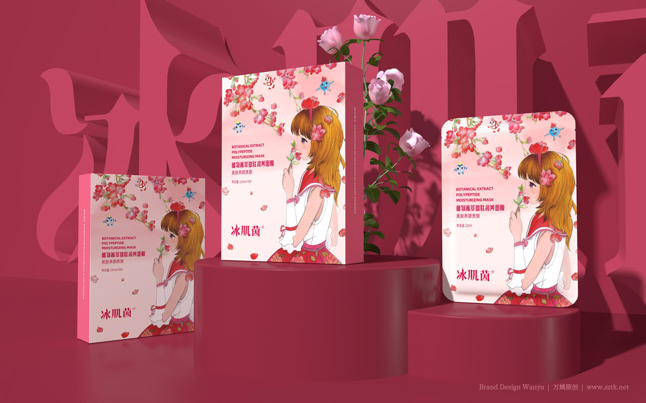 美業(yè)中擁有自己的品牌IP,是首創(chuàng)!更是發(fā)展趨勢! 特別是80/90/00后已成為消費主力軍,他們/她們對 動漫IP有著耳濡目染的親切感和認知認同無免疫力。 就像《三只松鼠》堅果電商品牌的三只松鼠IP。IP的力量大家已知曉,我們在包裝及宣傳畫面創(chuàng)作中,以IP形象塑造冰肌茵植物多肽面膜視覺錘:IP男主角:肽公子,IP女主角:因子寶貝。IP三核心元素:勝肽寶貝 + 勝肽精靈 + 因子精靈。品牌IP“肽公子”:是一千多種肽的總稱。人體內其存量的增多或減少,直接引起逐漸衰老和引發(fā)疾病。自1902年到2018年已有23位科學家研究肽而獲得15個諾貝爾獎,并證實90%以上的衰老和疾病都與缺肽有關。品牌IP:因子寶貝。細胞生長因子是參與人體修復、調控和再生細臉的功能蛋白。人體內沒有了她就會失去一切生命活動。她隨著年齡的增長會逐漸減少而引發(fā)各種衰老癥狀。人體皮膚內細胞生長因子含量的多少直接決定皮膚的年輕程度。因此被科學家們譽為“美麗因子”。